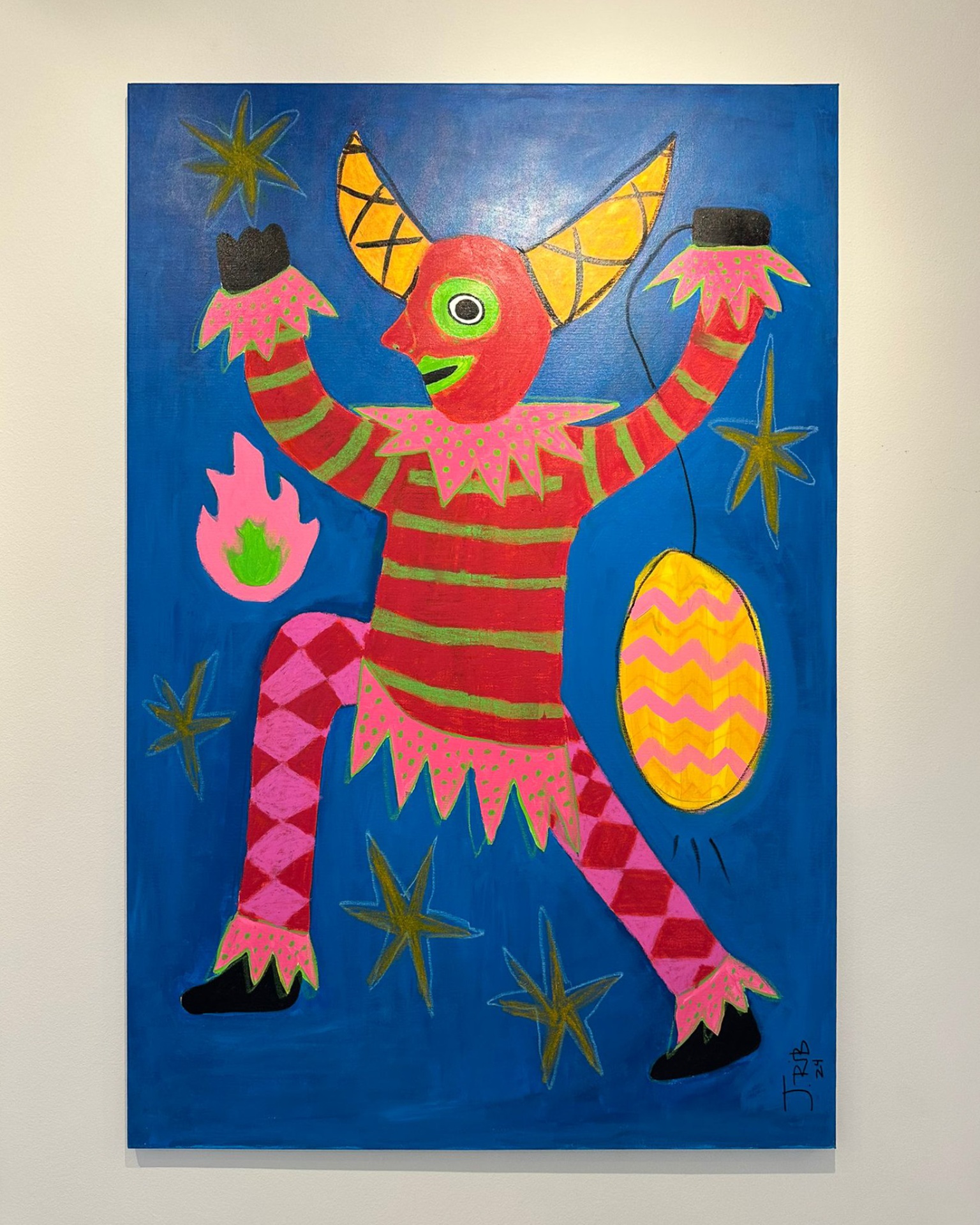 A série Cortejo Carnavalesco é uma brincadeira com esta figura festiva, mas demoníaca, alegre, mas maléfica. É, de modo geral, um pequeno carnaval fora de época: pensada para ser exposta em um lugar de passagem, deseja-se criar um cortejo de festa – e um tanto diabólico.