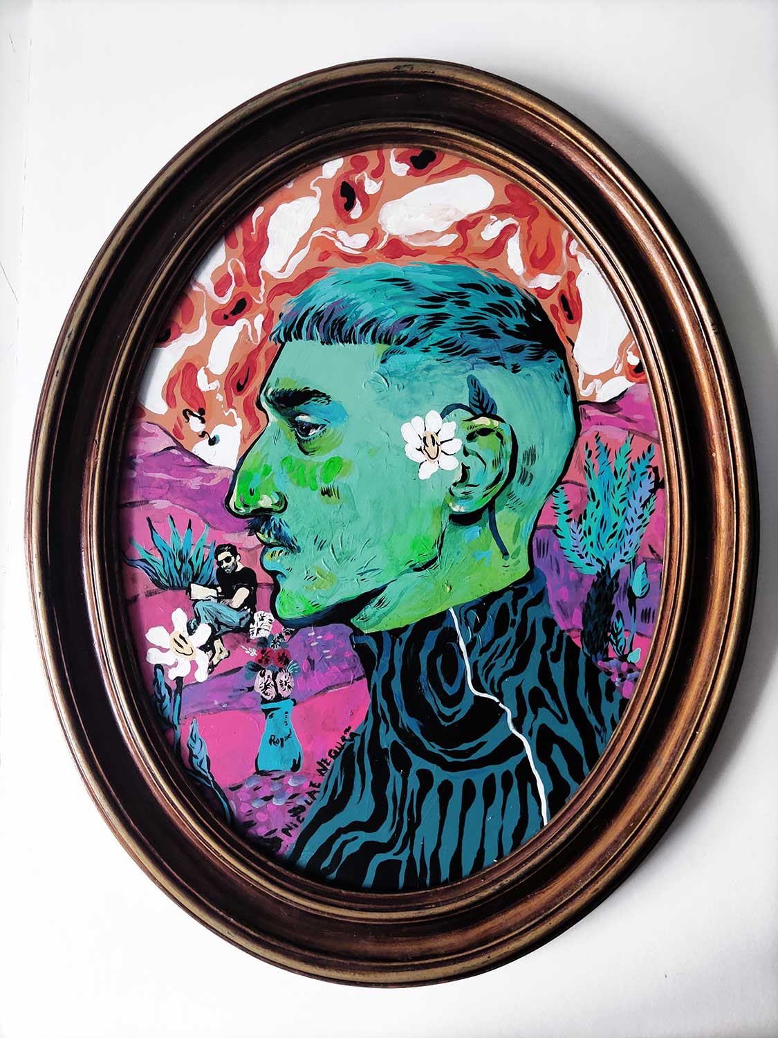 Algures em 2020, no âmbito de um projeto pessoal, comecei a experimentar fora do mundo da ilustração digital e comecei a trabalhar mais com acrílico e aquarela como suporte para minhas pinturas, o que me levou a sair da minha zona de conforto.