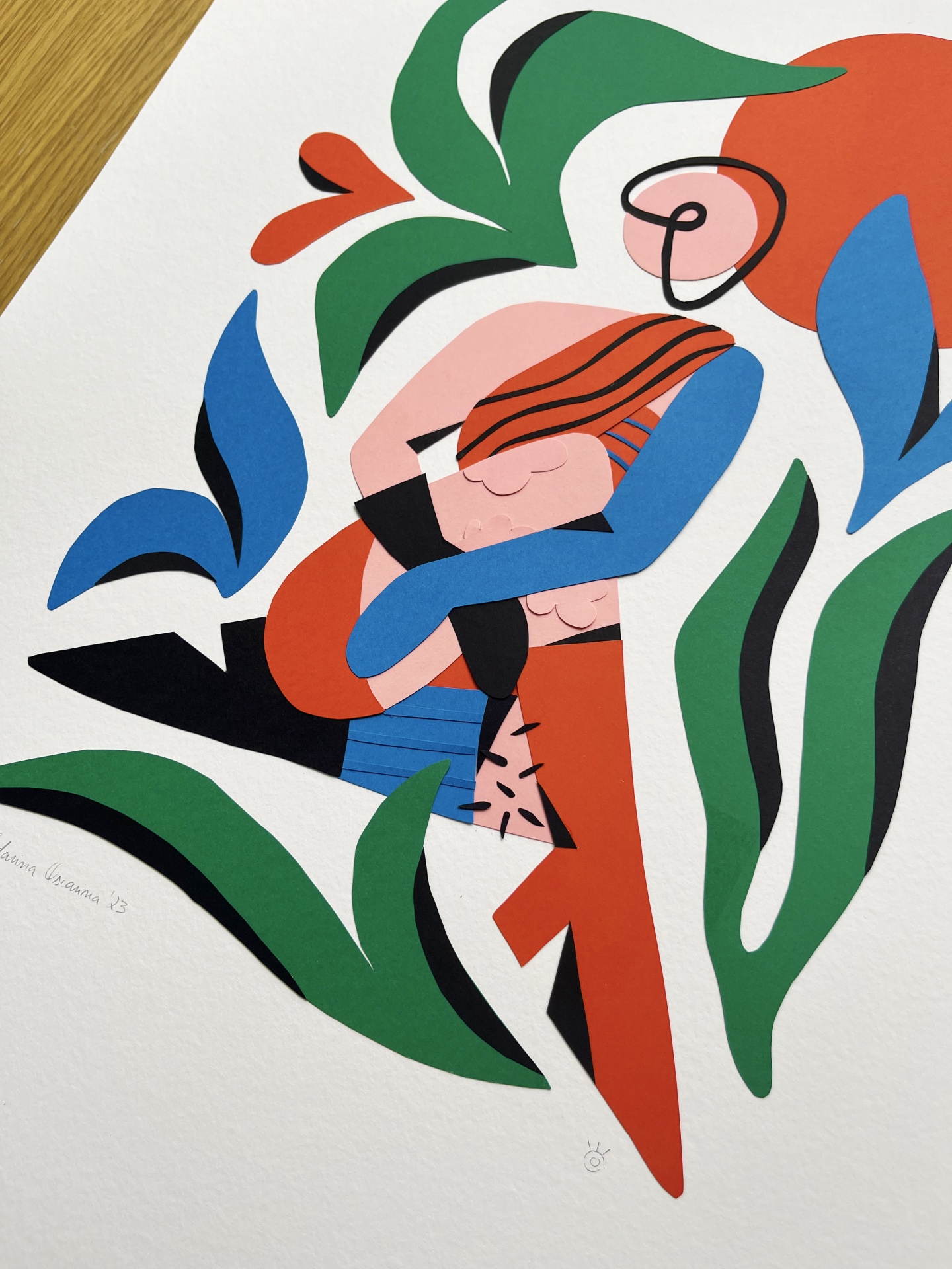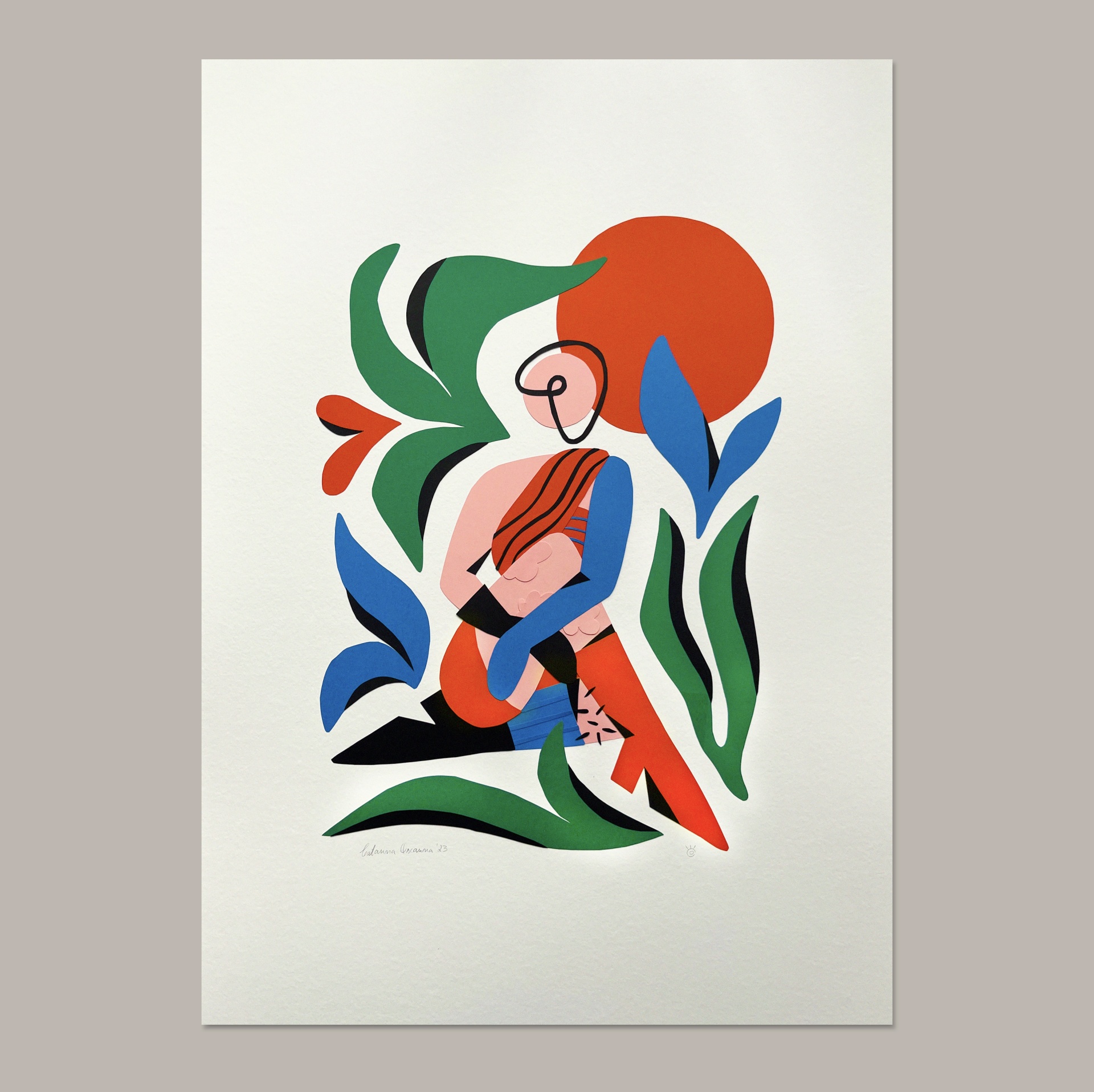 • Ilustração abstrata colorida com figuras humanas e folhas