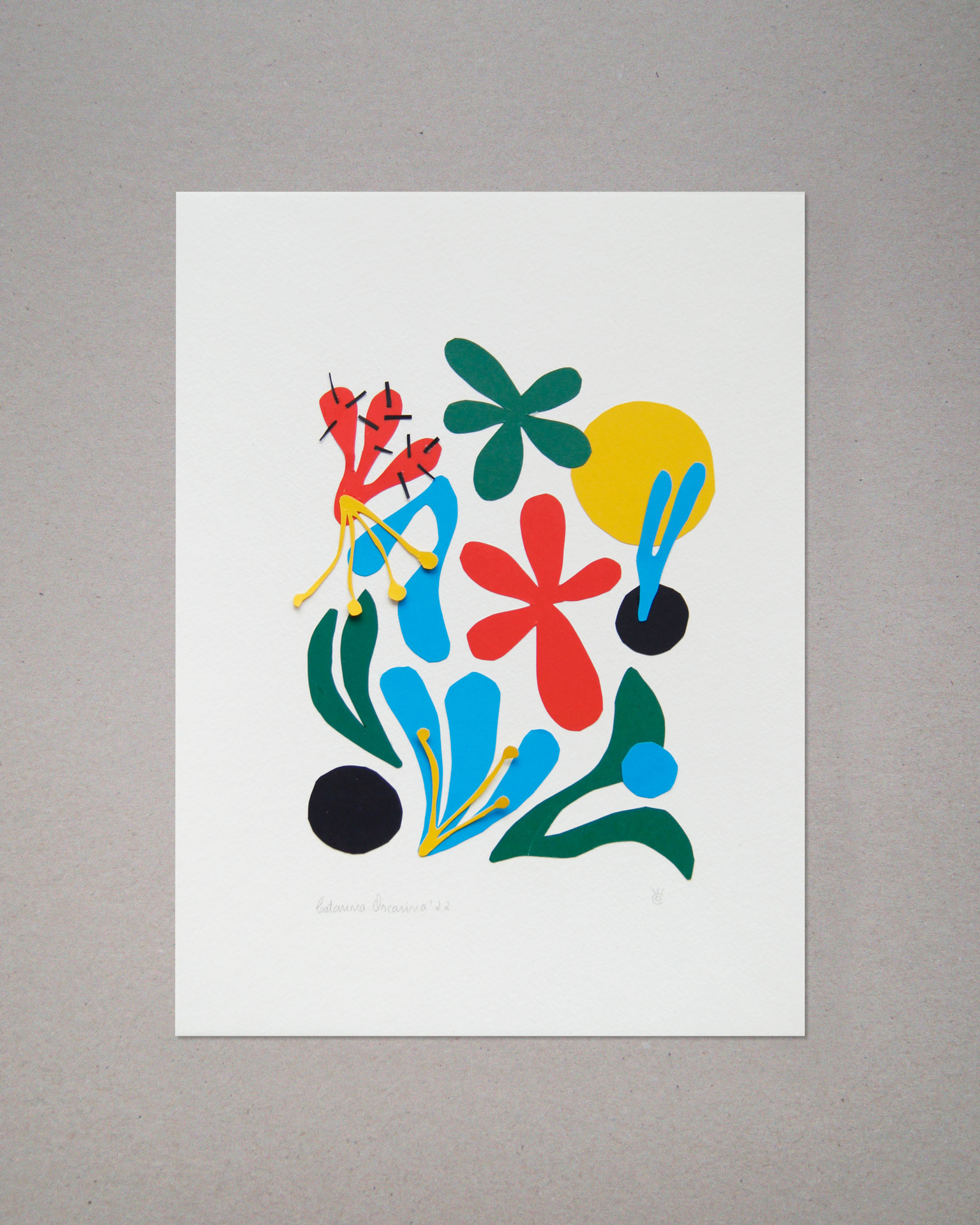 • Gravura colorida com flores abstratas em várias cores, assinada e numerada.