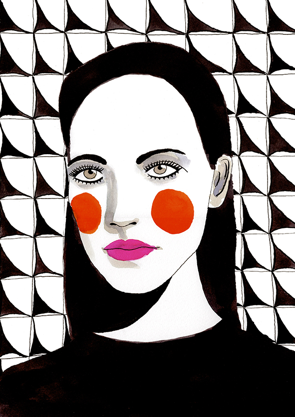 ORIGINAL "MULHER COM AZULEJO GEOMÉTRICO" JOANA NOBREGA Aguarela e Caneta sobre Papel