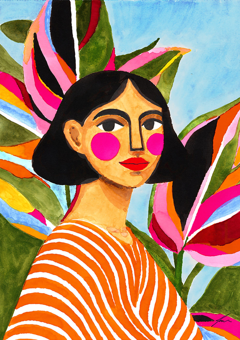 ORIGINAL "MULHER DE LISTRADO E FOLHAGEM " - JOANA NOBREGA