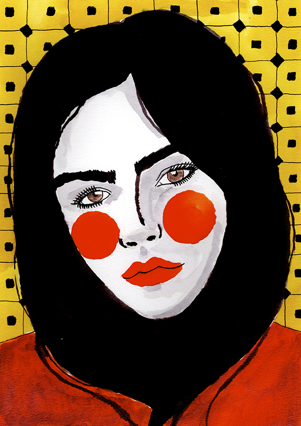 ORIGINAL "MULHER DE VERMELHO SOBRE AMARELO" JOANA NOBREGA Aguarela e Caneta sobre Papel