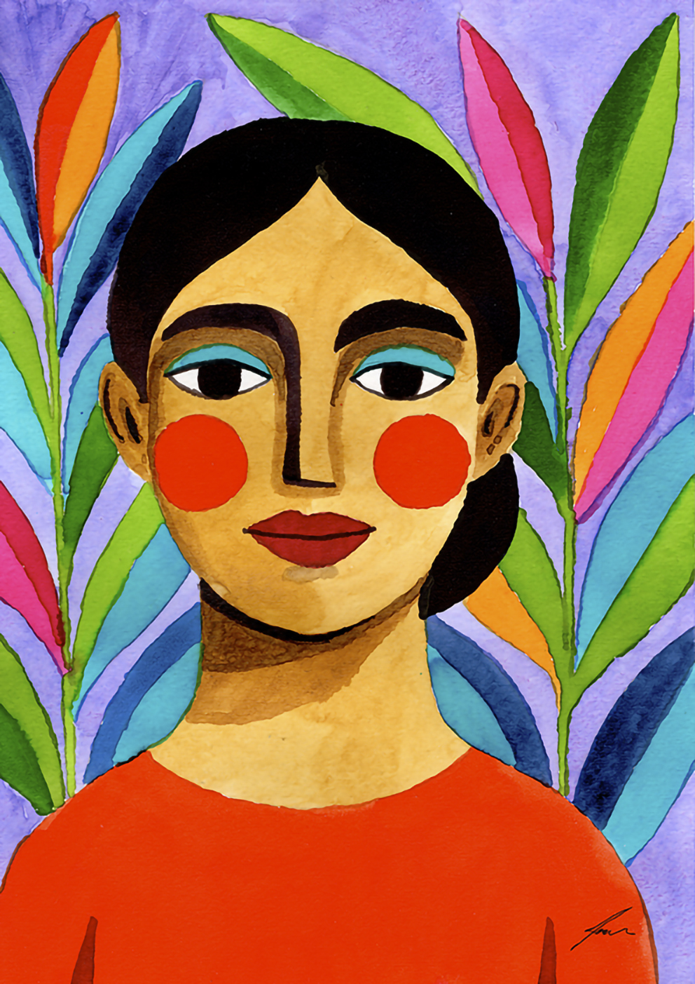 ORIGINAL "MULHER E FOLHAGENS COLORIDAS" - JOANA NOBREGA