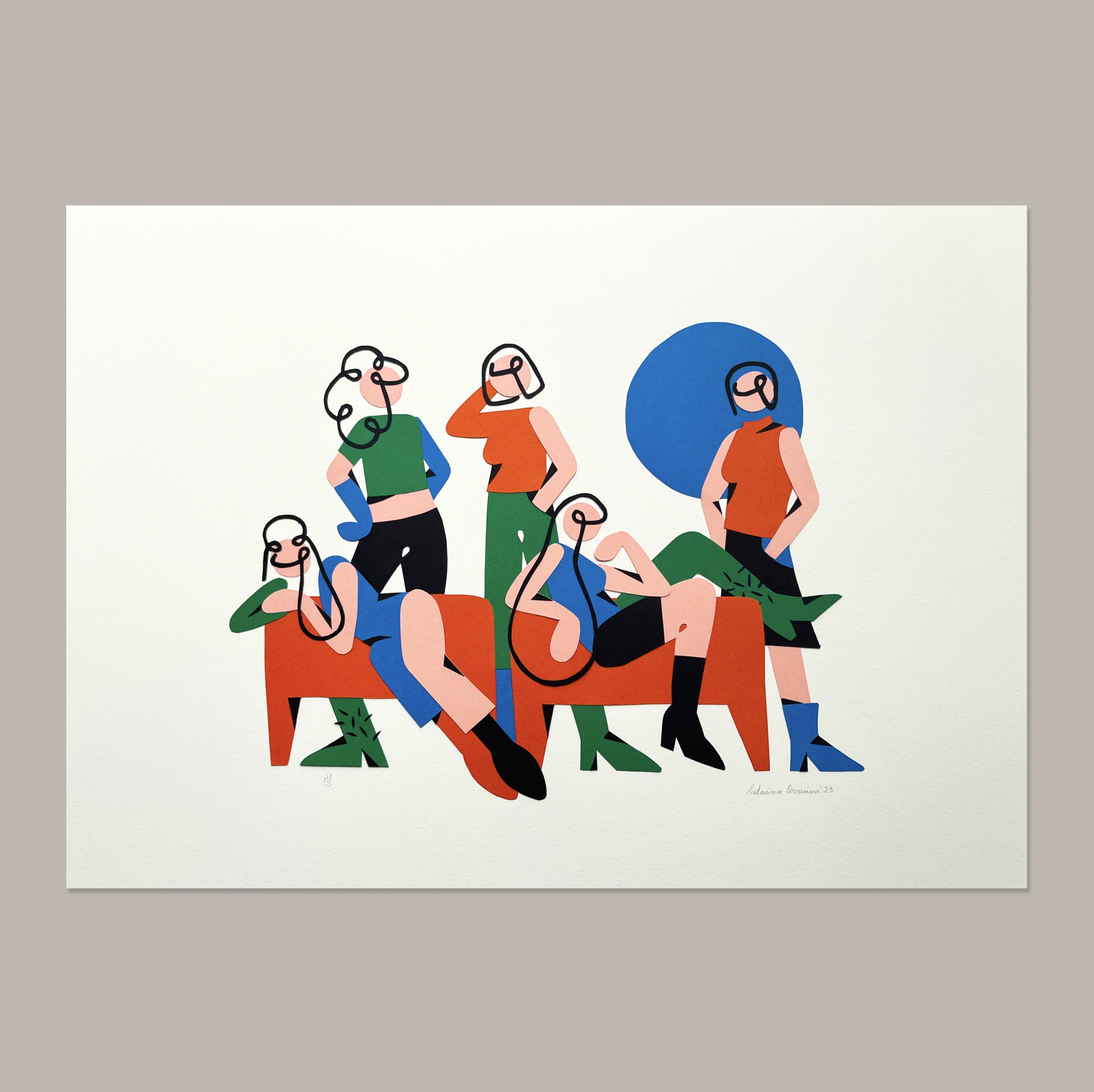 • Ilustração estilizada de várias figuras coloridas sentadas