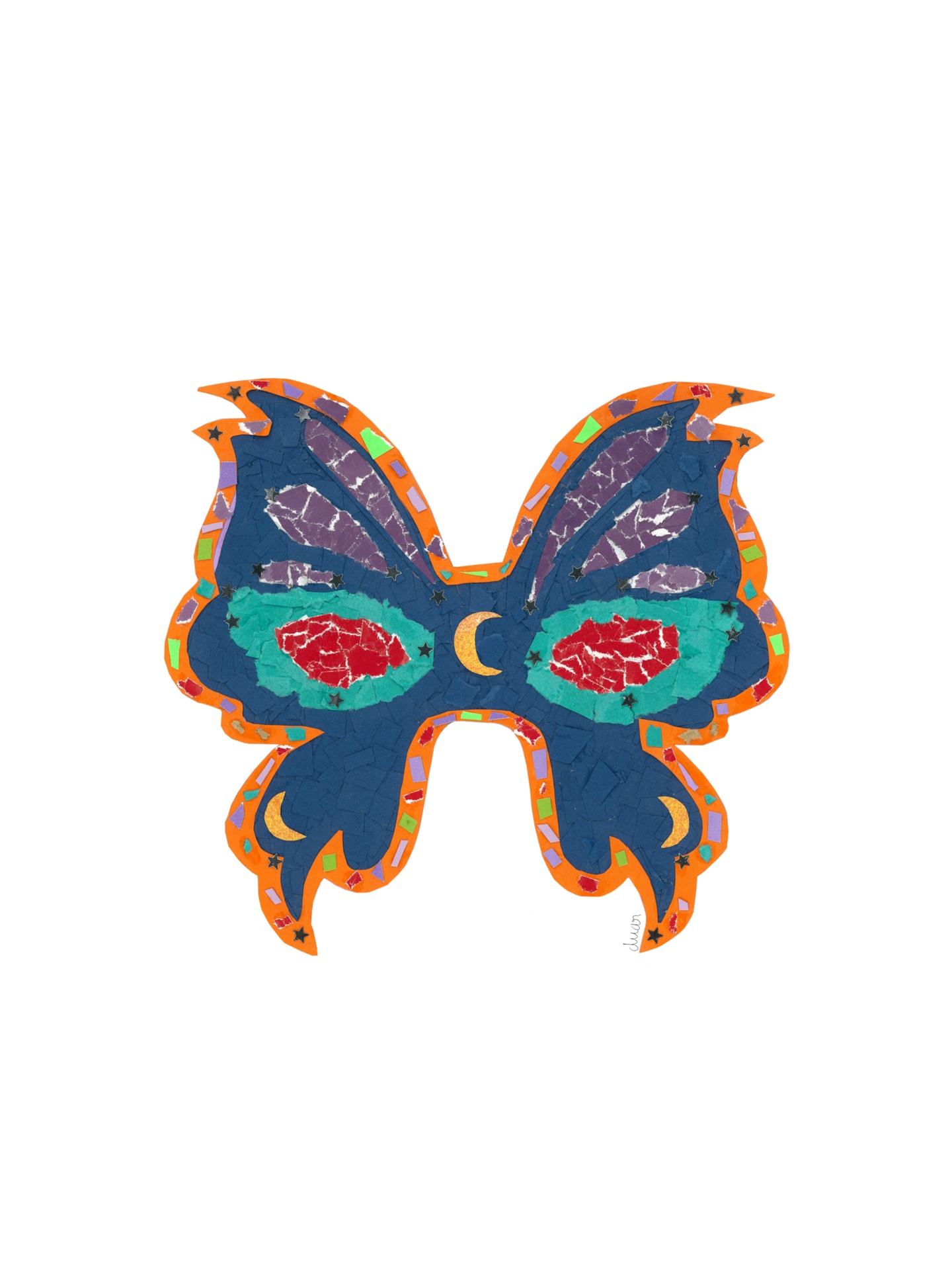 • Máscara em forma de borboleta com padrão colorido vibrante