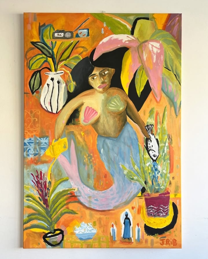 ORIGINAL "SEREIA REGANDO PLANTAS NUM SÁBADO " JEFFERSON RIB 80cmx120cm óleo s/ tela