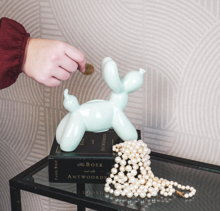 Styling tip: The ballon dog moneybank is the perfect gift for all ages.