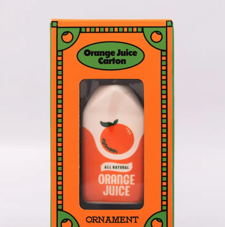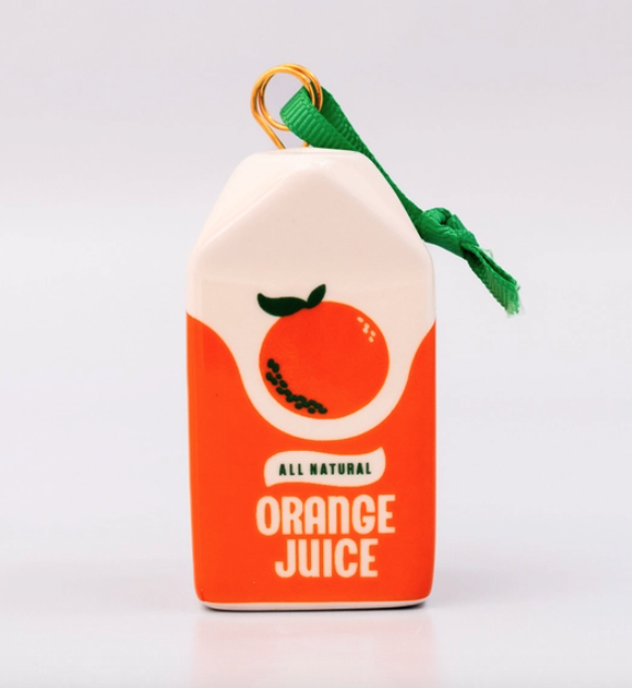 Orange you glad we offer an orange juice ornament? It's made of ceramic and is a fun accent for a tree, cabinet pull, or anywhere else you want to put it.