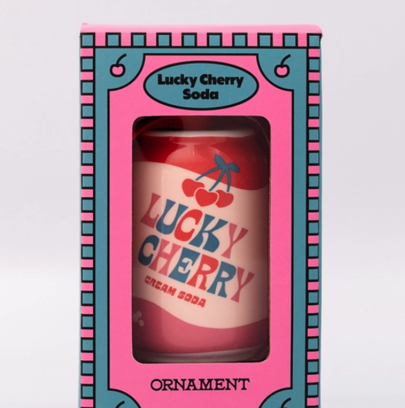 You're in luck: A lucky cherry cream soda ornament. It’s made of ceramic and has a ribbon to hang it on a tree or plant or hook.