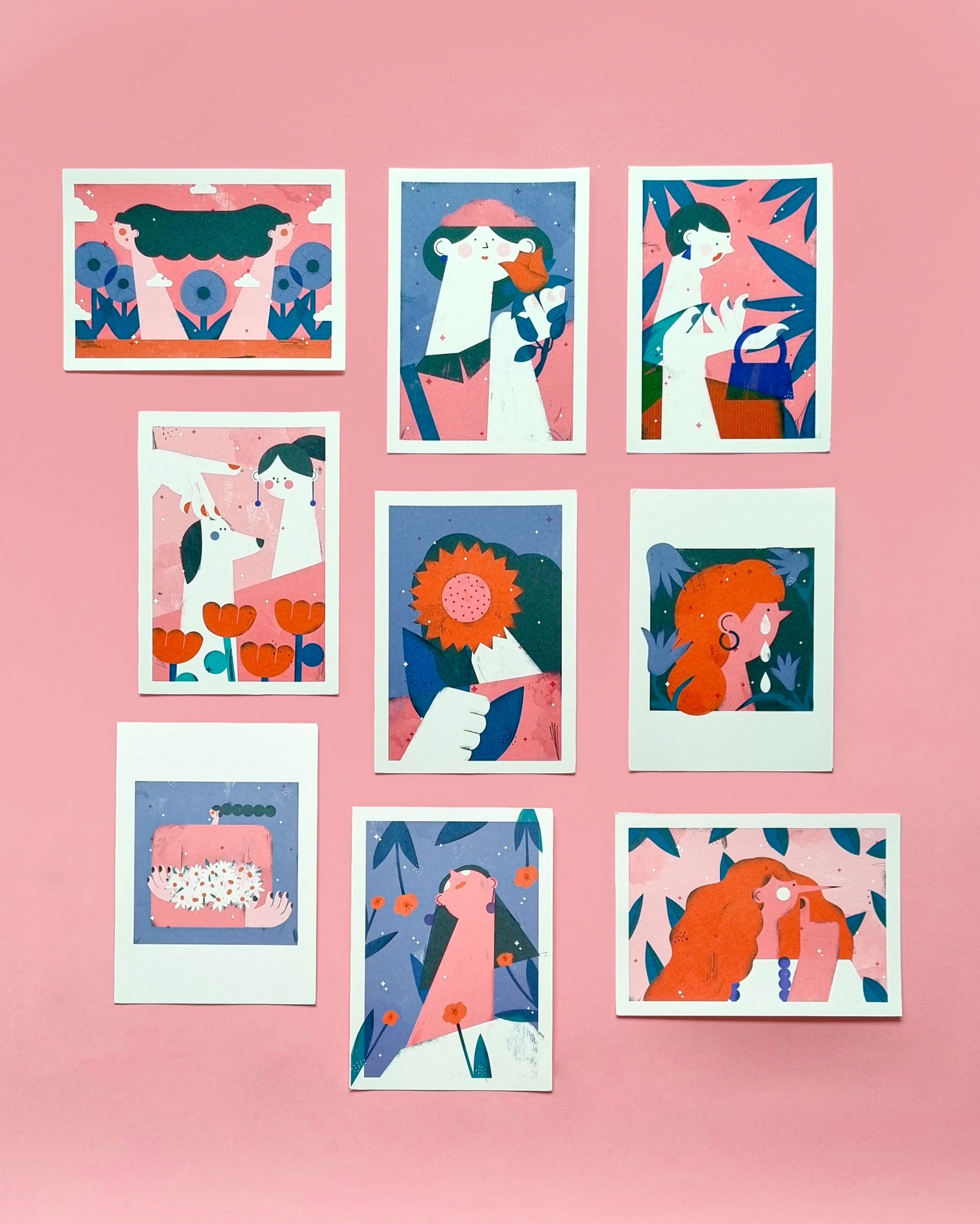 Formato: A6 (Pack 9 ilustrações) Técnica: Técnica mista Impressão Digital