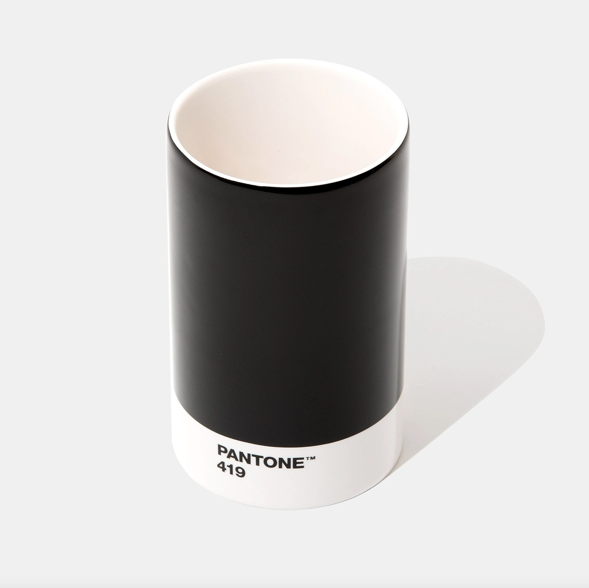 • Copo cerâmico preto com base branca e texto PANTONE 419