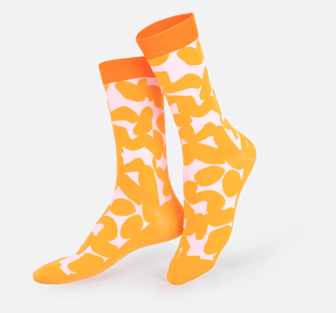 • Meias laranja e branco com padrão abstracto