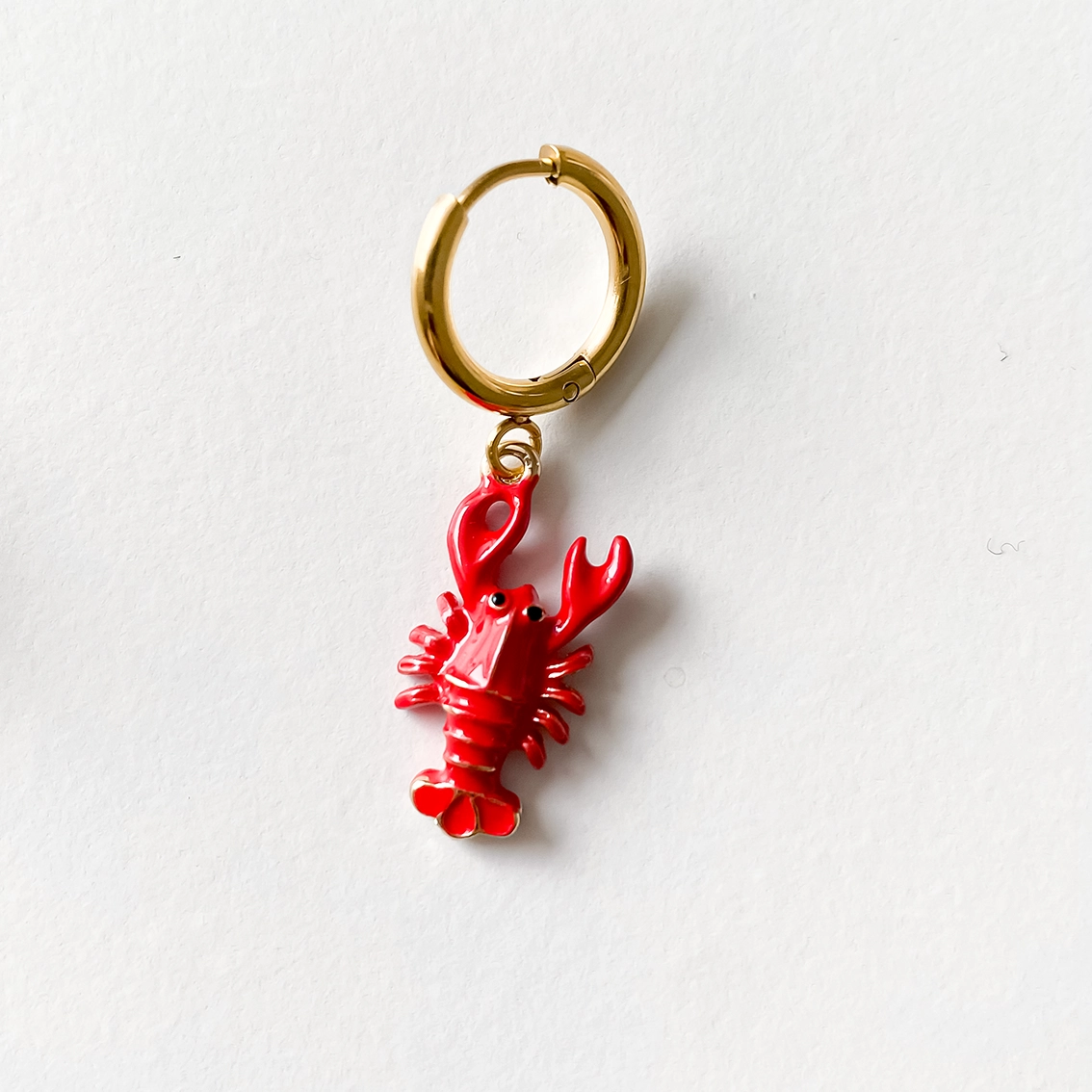• Brinco com argola dourada e pendente de lagosta vermelha