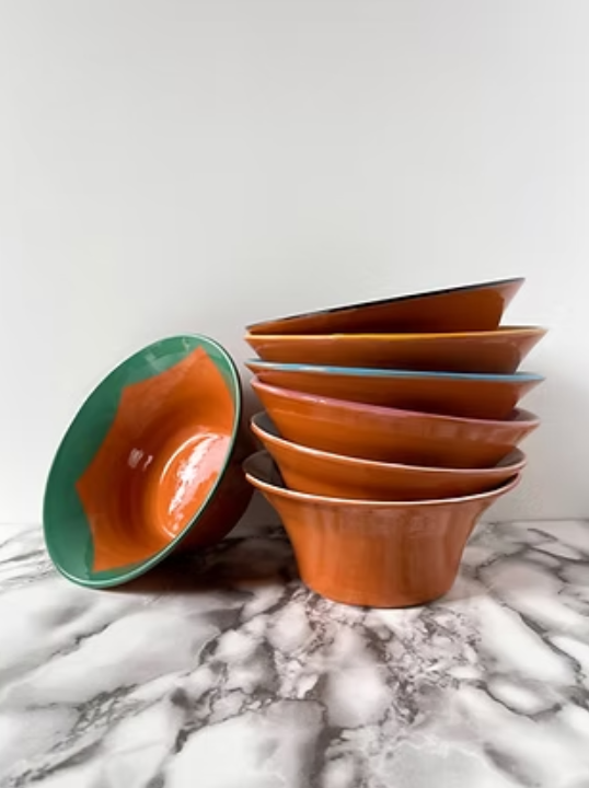 - Terracota resistente de roda e pintada à mão / Esmaltes à base de água / Fabricado em Portugal - Algumas marcas no esmalte são naturais e esperadas / O fundo da loiça vai suar inicialmente, isso é normal e vai diminuir com o tempo - Antes do primeiro uso, as peças devem ser lavadas com água e sabão e secar ao ar.