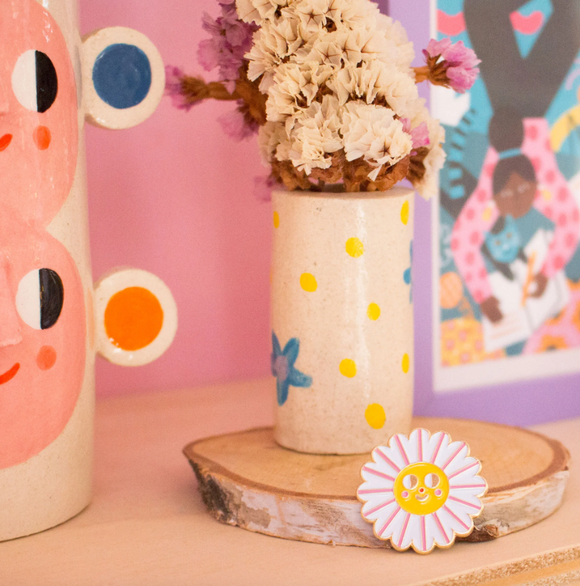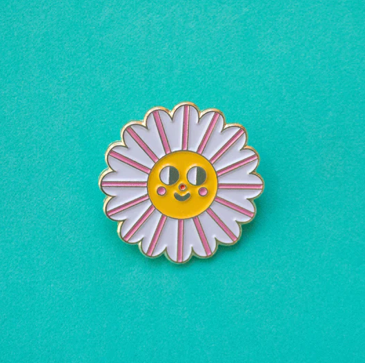 • Broche flor sorridente esmaltado em metal sobre cartão colorido