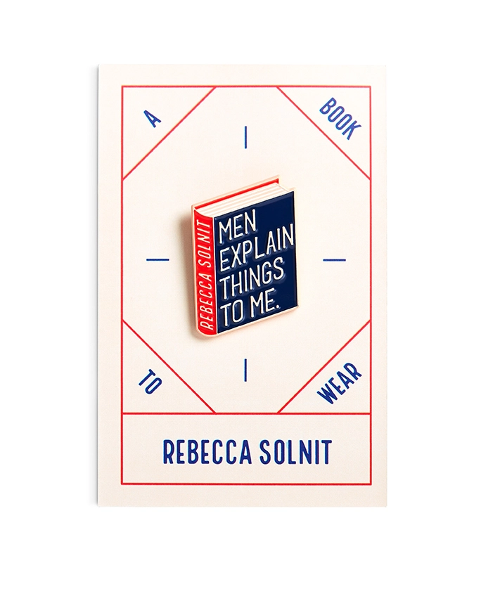 • Pin esmaltado em forma de livro com texto 'MEN EXPLAIN THINGS TO ME'