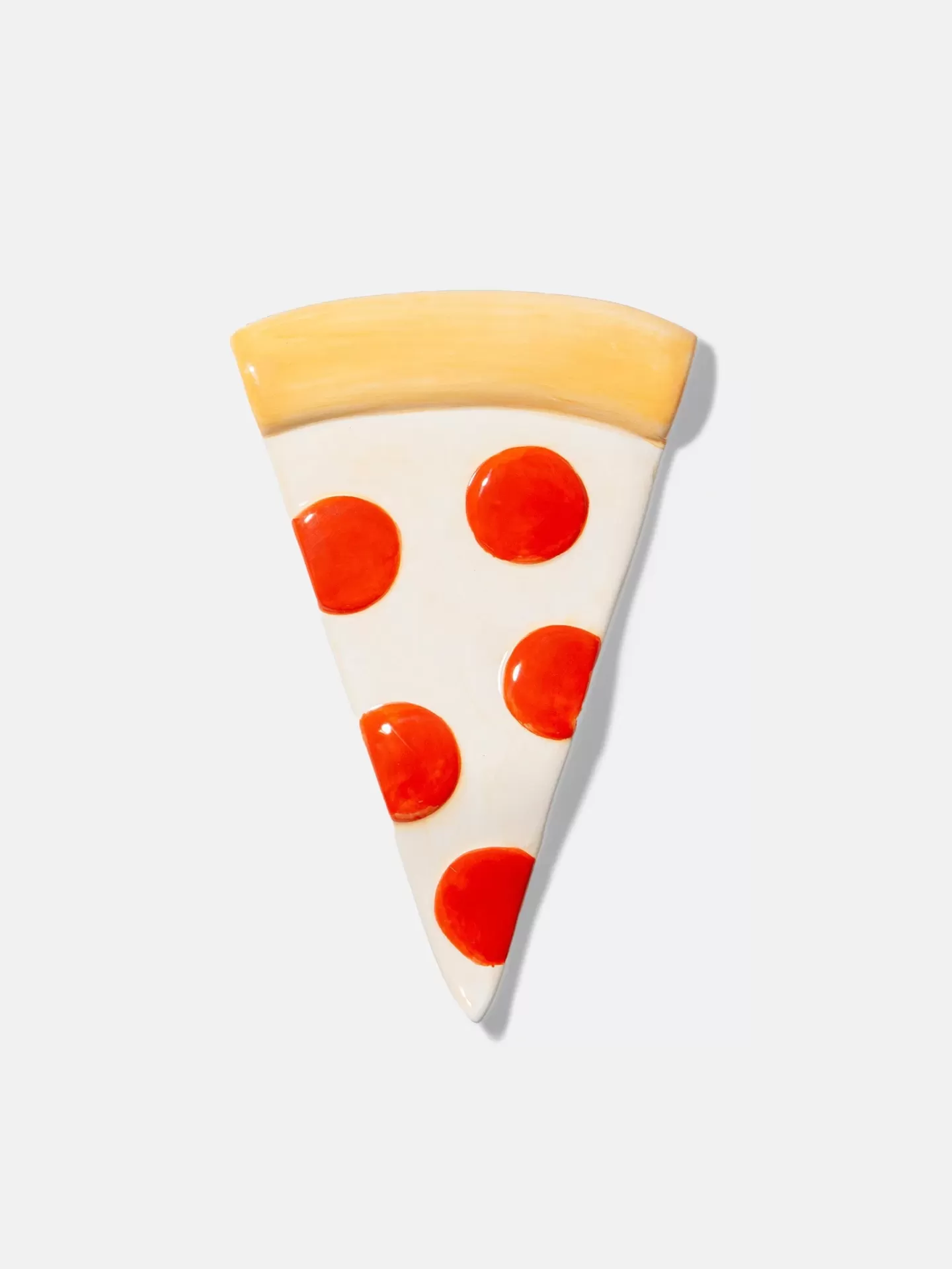 Ceramic spoon rest shaped as a pizza slice, designed to take on the iconic imagery reminiscent of 1950s diner and fast-food icons, infusing your space with an irresistibly delicious retro treat.