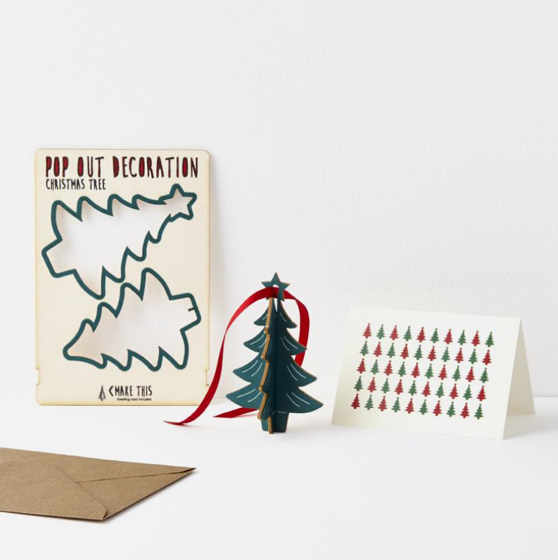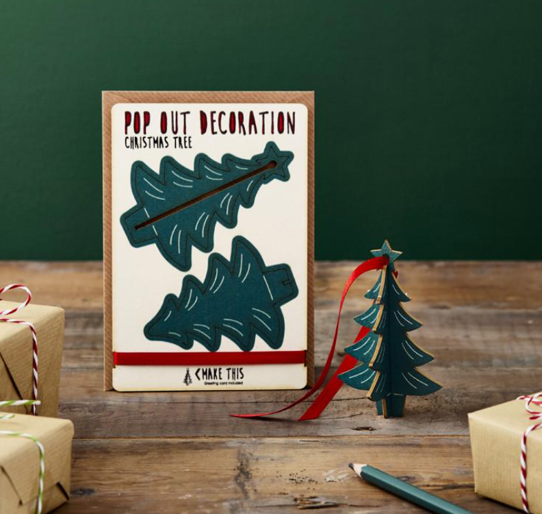 Simply send flat to your friend or family member who will pop out the parts and slot together to create their very own hanging Christmas tree decoration.
