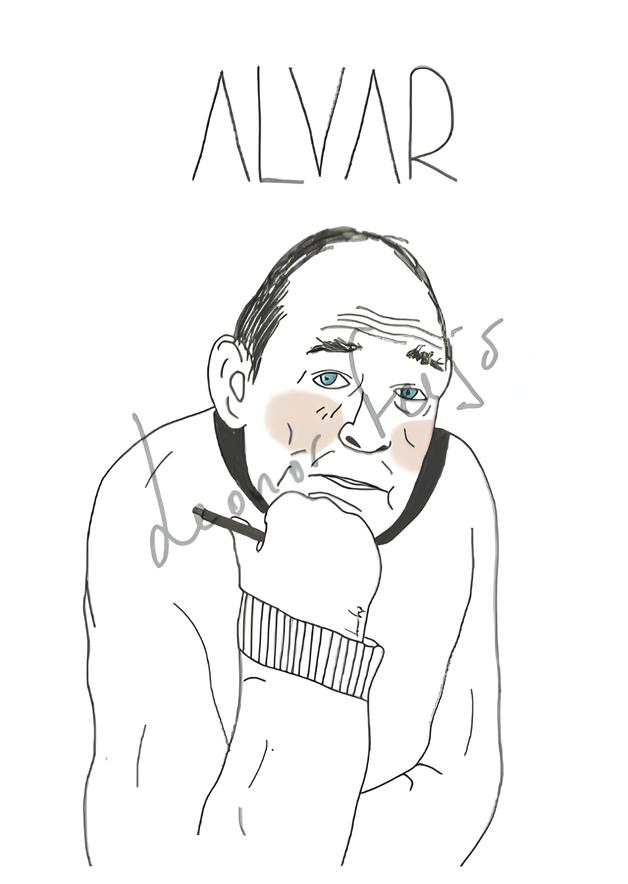 • Desenho digital de homem com olhos azuis e camisola de gola alta com texto ALVAR
