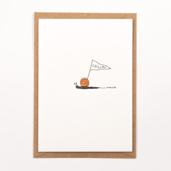 Cartão branco com desenho de caracol e bandeira CHILLAR