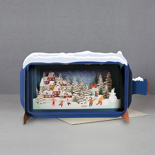 POSTAL DE NATAL POP-UP "MESSAGE IN A BOTTLE - PLAYING IN THE SNOW" ALLJOY DESIGN