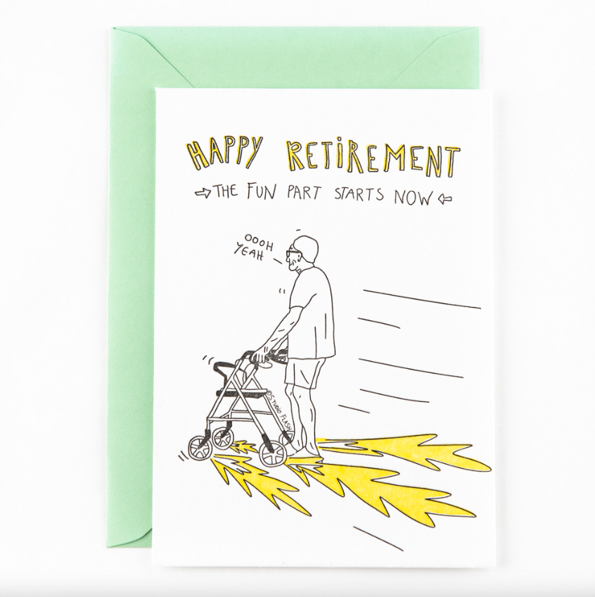POSTAL "HAPPY RETIREMENT, THE FUN PART STARTS NOW" STUDIO FLASH