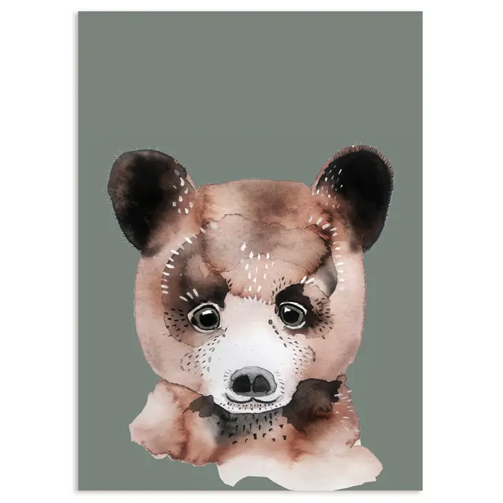 • Ilustração de cabeça de urso em aguarela com fundo cinza