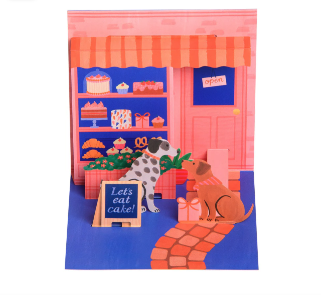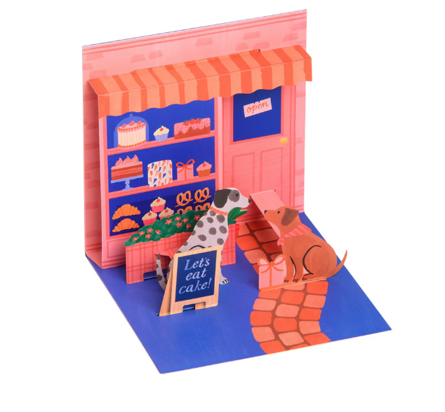 • Modelo pop-up em papel de pastelaria com cães e bolos