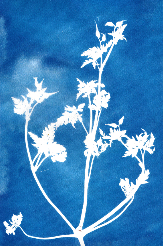• Planta branca em fundo azul, estilo cianótipo artístico