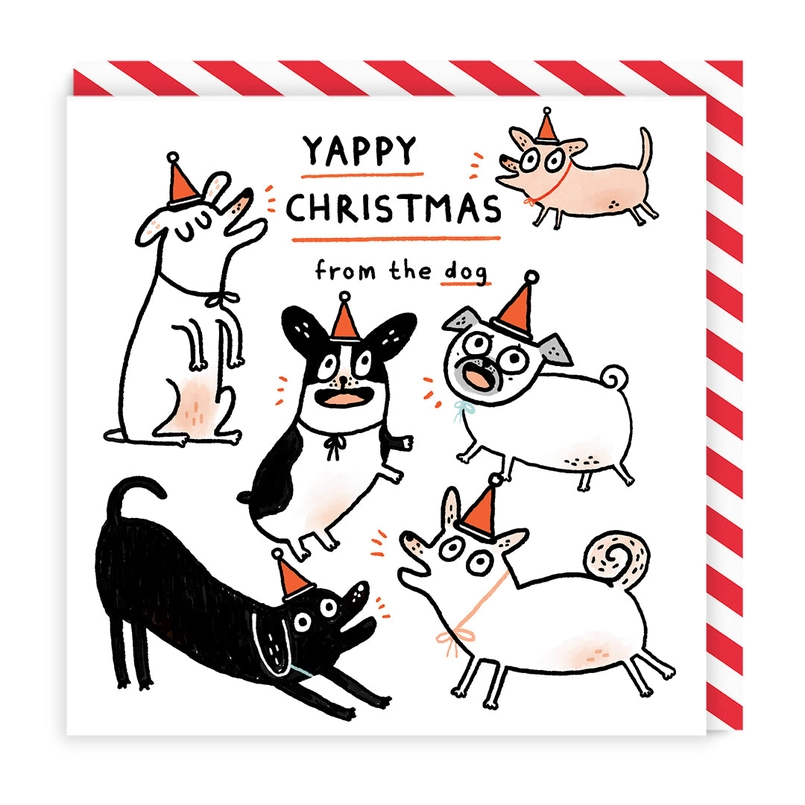 • Cartão de Natal com cães desenhados e texto YAPPY CHRISTMAS from the dog