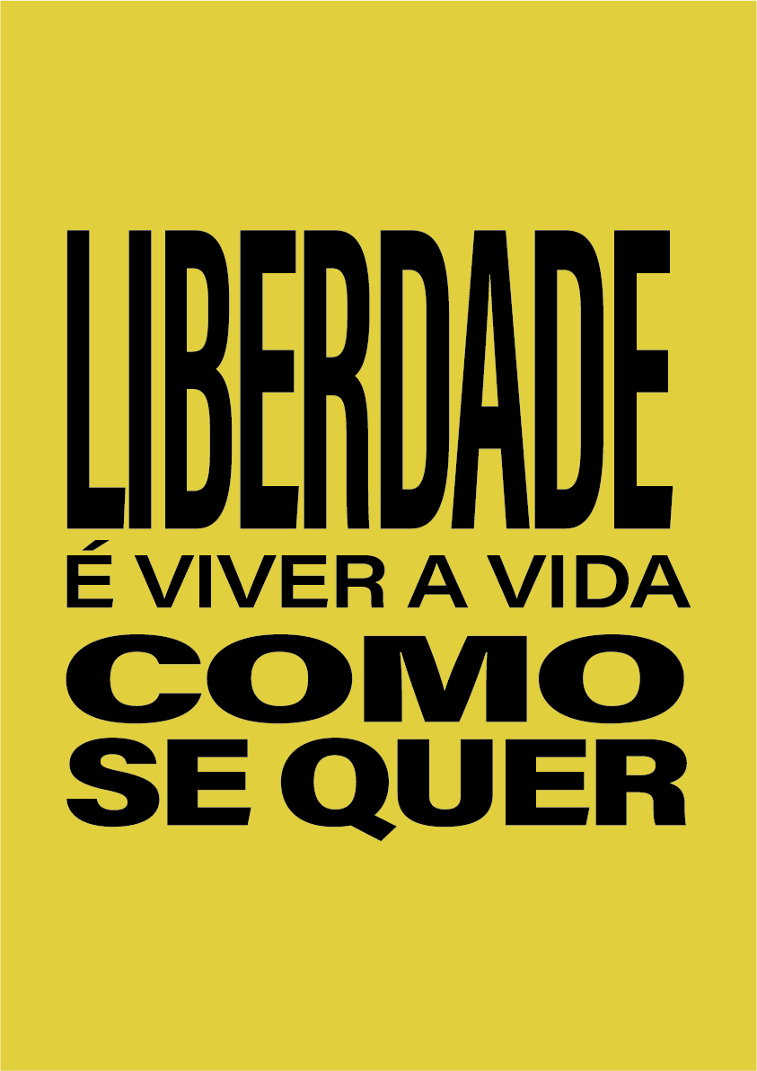 Texto preto em fundo amarelo com a frase LIBERDADE É VIVER A VIDA COMO SE QUER