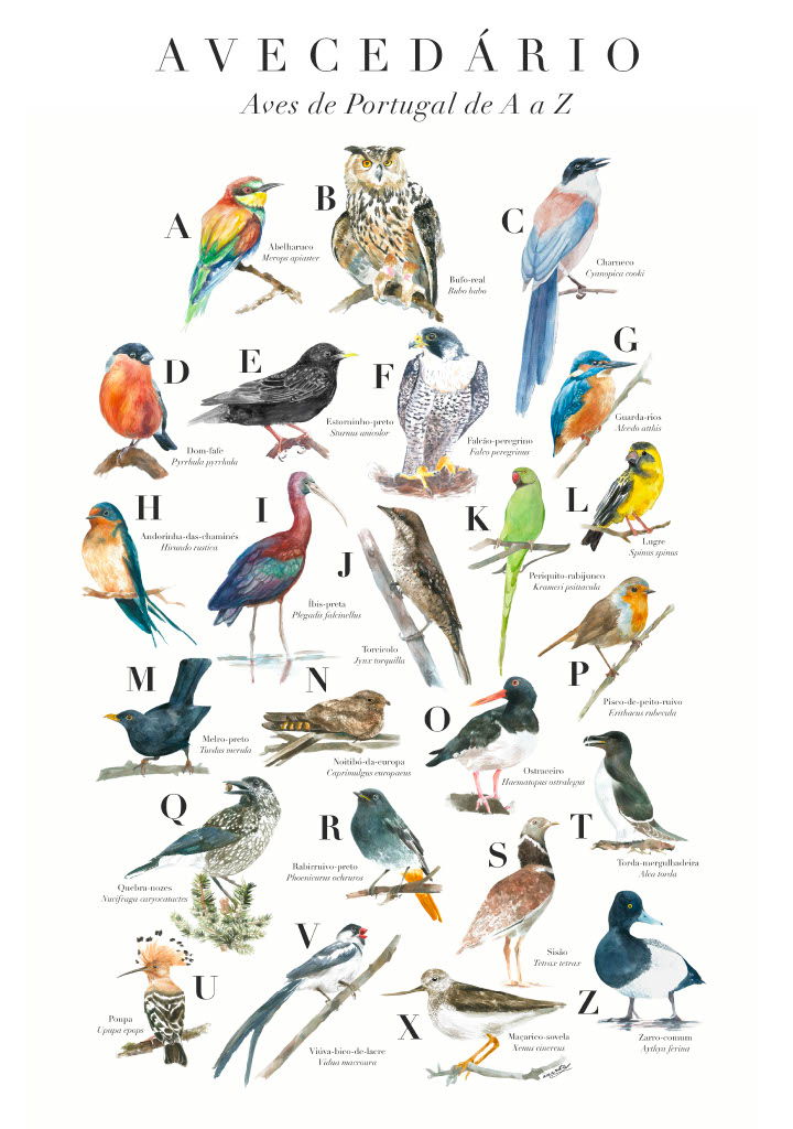 O Avecedário descreve uma seleção de 24 aves, de A a Z.