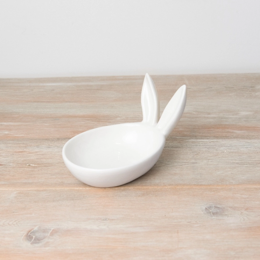 Este prato profundo em forma de coelho com orelhas pontiagudas é perfeito para apresentar ovos e guloseimas, bem como chaves, jóias e outros pequenos itens.
