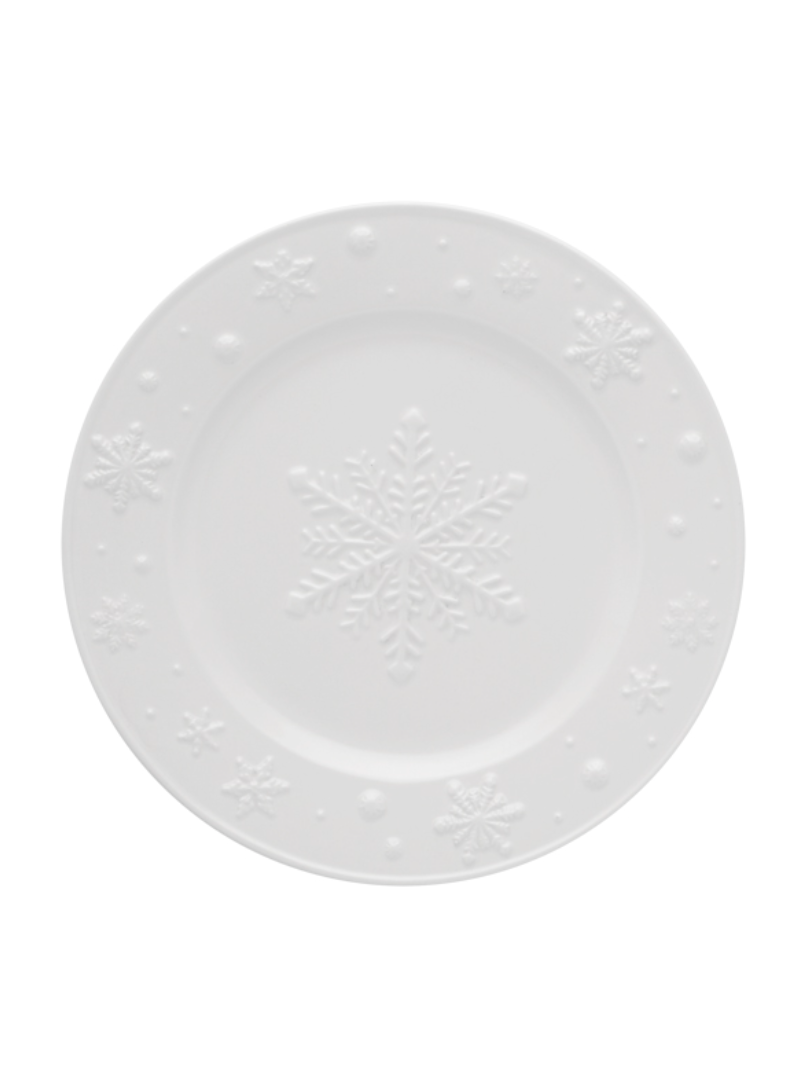 • Prato branco redondo com relevo de flocos de neve