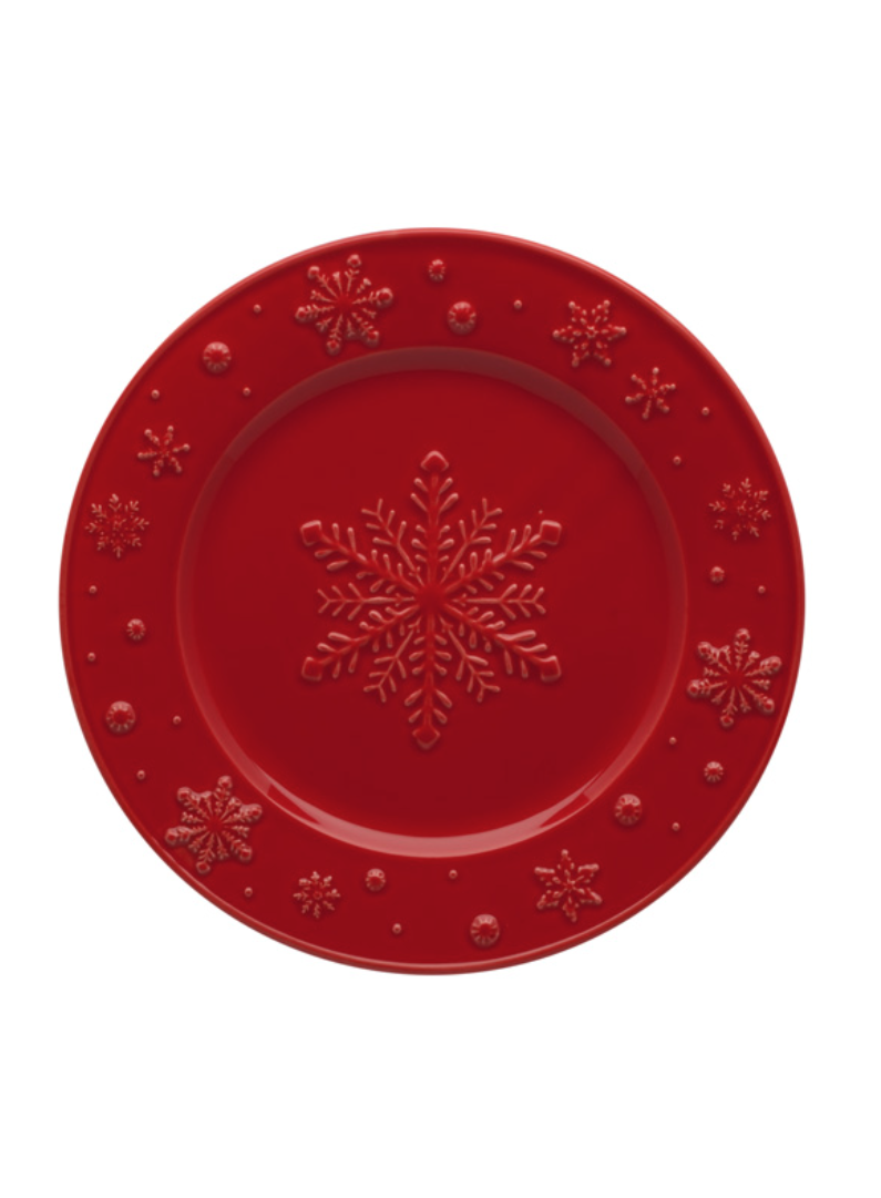 • Prato cerâmico vermelho com padrão de flocos de neve em relevo