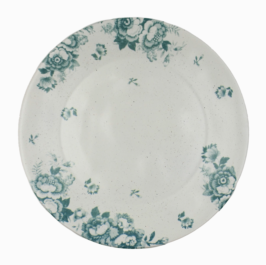 PRATO JANTAR VINTAGE FLOWERS VERDE PÓ DE BARRO