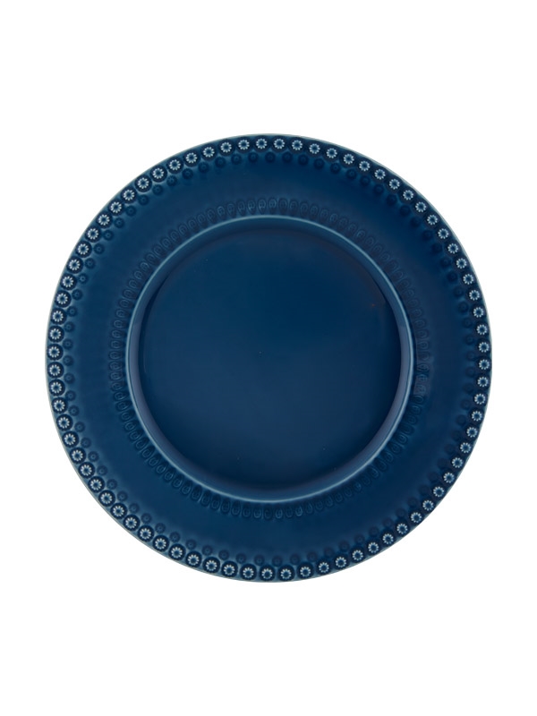 • Prato azul em cerâmica com padrão circular na borda