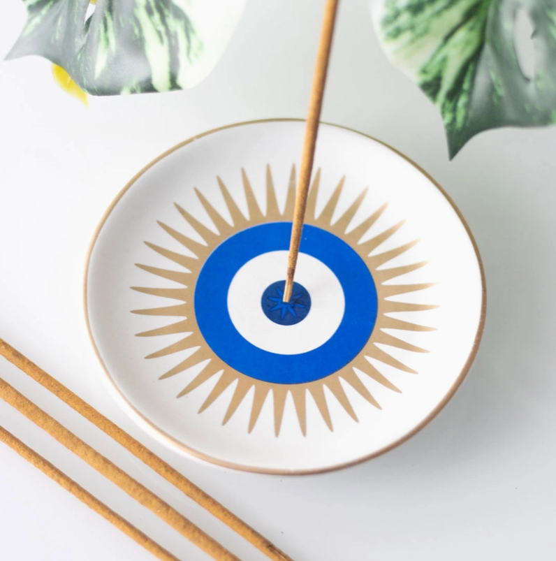 Desperte o seu terceiro olho com este porta-incenso em cerâmica, um símbolo espiritual de proteção. Com um design moderno, este porta-incenso em cerâmica ficará elegante numa mesa de apoio ou numa mesa de cabeceira enquanto captura as cinzas que caem.