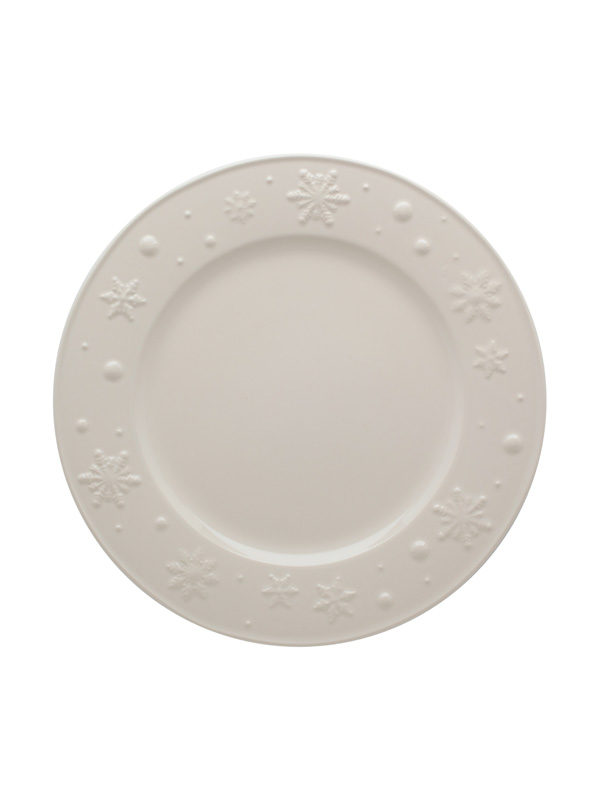 • Prato branco com relevo de flocos de neve e bolinhas na borda