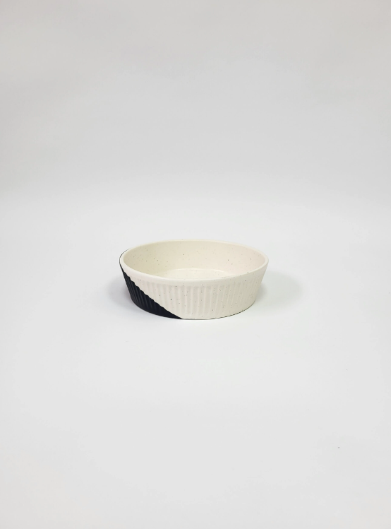 • recipiente de cerâmica branco e preto com textura riscada