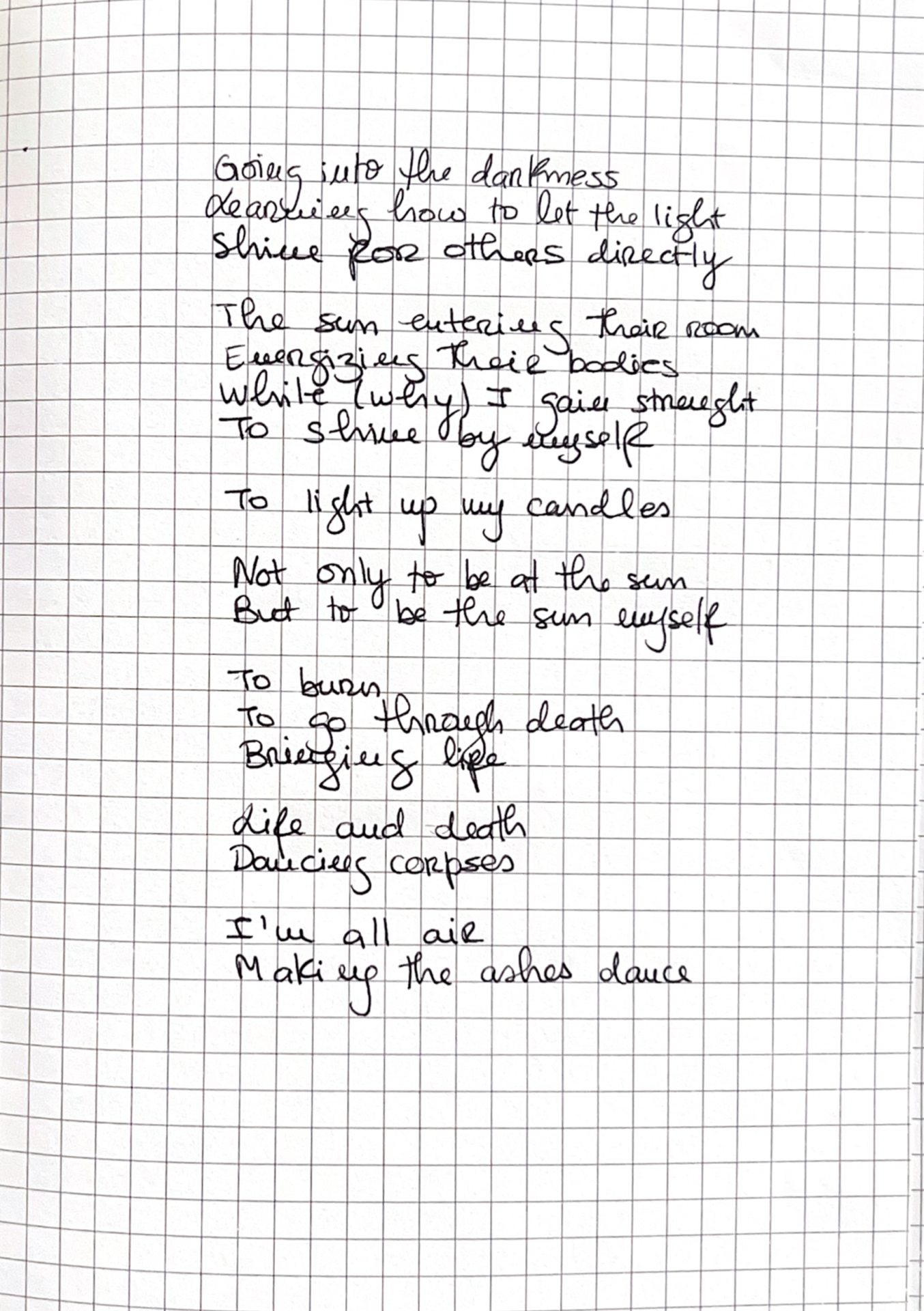 São 3h da manhã e o meu cérebro desperta. Respira fundo. Relaxa o maxilar. Dói-me o peito. Ansiedade e/ou entusiasmo? Quilómetros e quilómetros de uma cama coçada, um corpo cansado, um cérebro riscado. Caneta e papel para chegar a algum lugar. Lençóis para envolver e cobrir o dia que (ainda) não quero ver. Será que chego? Já estou.