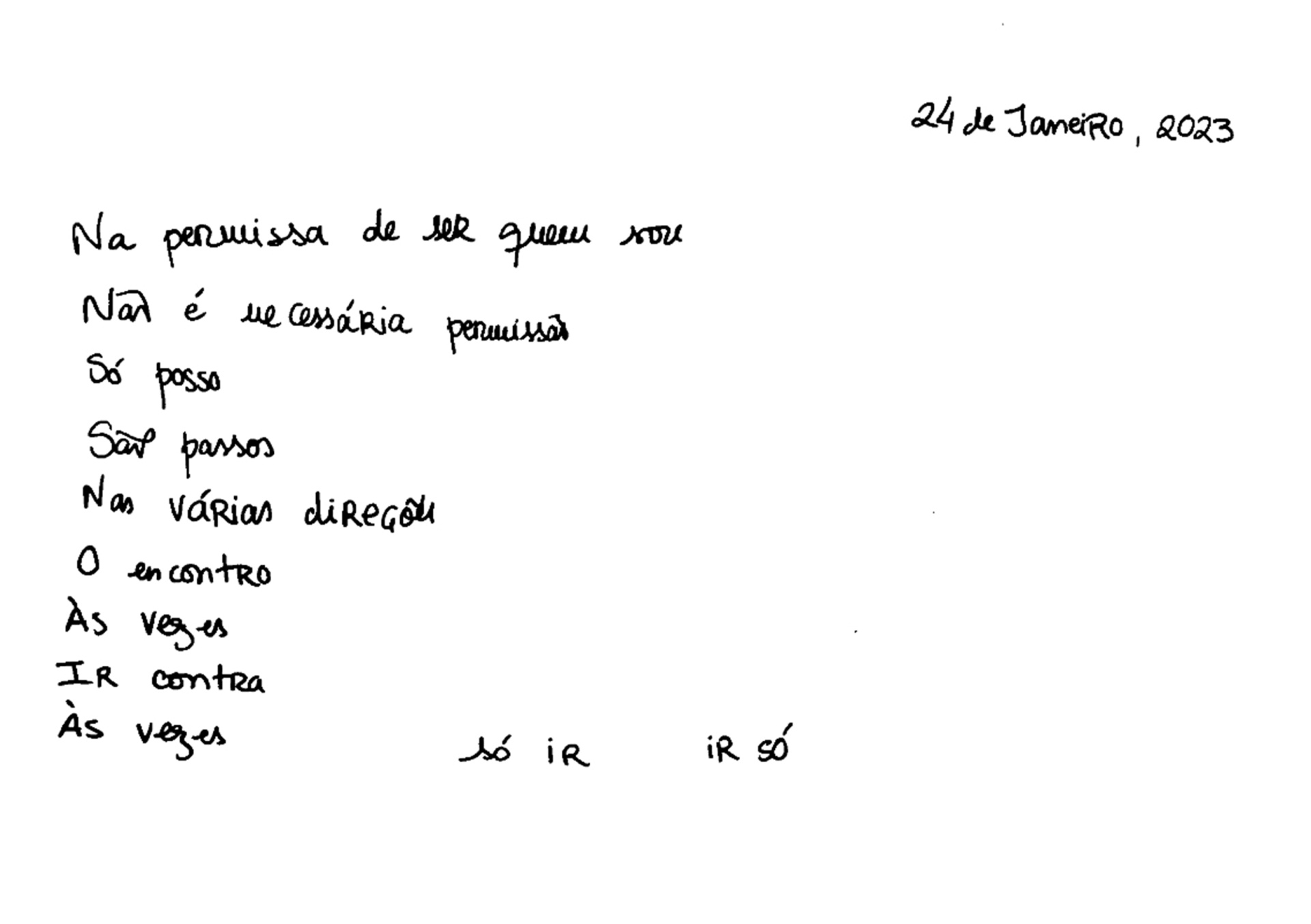 São 3h da manhã e o meu cérebro desperta. Respira fundo. Relaxa o maxilar. Dói-me o peito. Ansiedade e/ou entusiasmo? Quilómetros e quilómetros de uma cama coçada, um corpo cansado, um cérebro riscado. Caneta e papel para chegar a algum lugar. Lençóis para envolver e cobrir o dia que (ainda) não quero ver. Será que chego? Já estou.