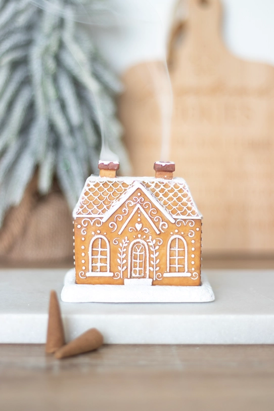 • Incensário em forma de casa de gengibre com cones de incenso