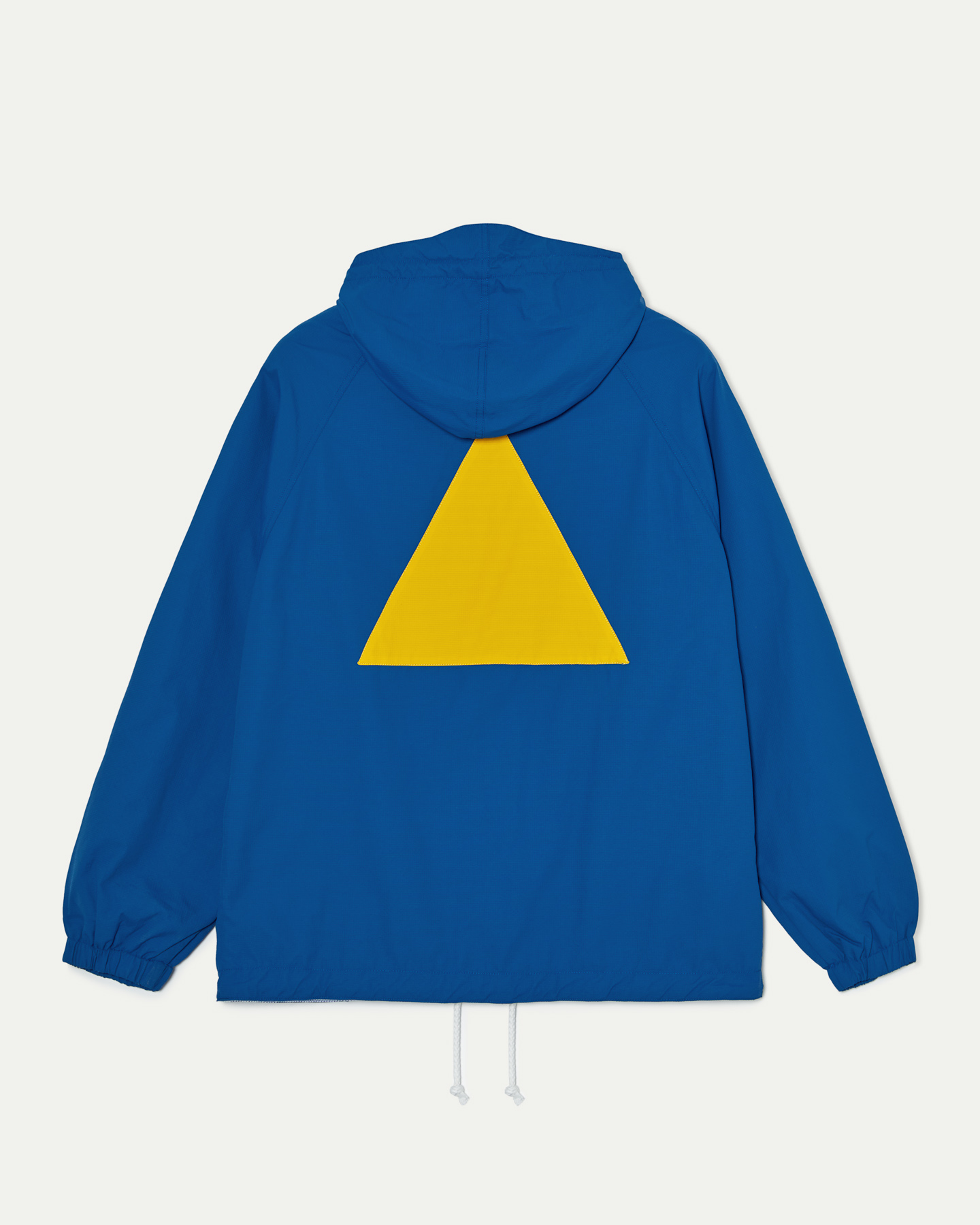 • Casaco azul com capuz e triângulo amarelo na parte de trás