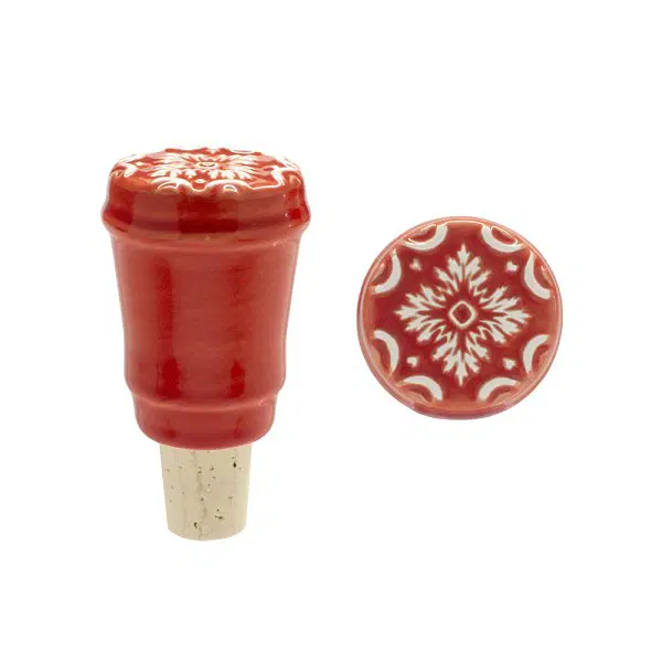 • Tampa de garrafa vermelha com padrão branco em cerâmica