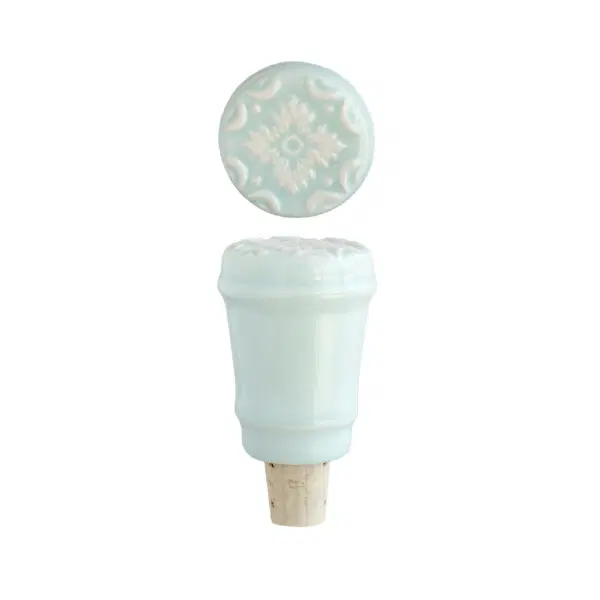 • Rolha para garrafa verde com padrão decorativo em cerâmica
