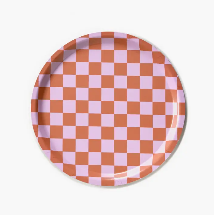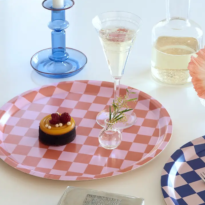 ROUND SERVING TRAY CHECKER ORANGE/PINK - 31 CM BLU KAT