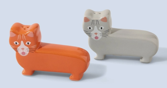 • Salgadores em forma de gatos em cerâmica laranja e cinza