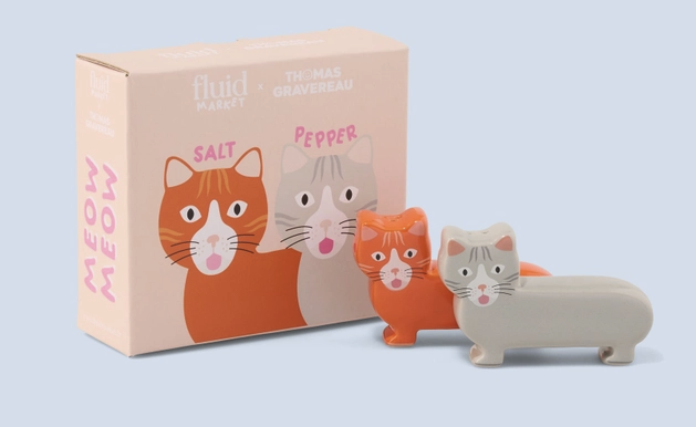 • Conjunto saleiro e pimenteiro em forma de gatos com embalagem rosa